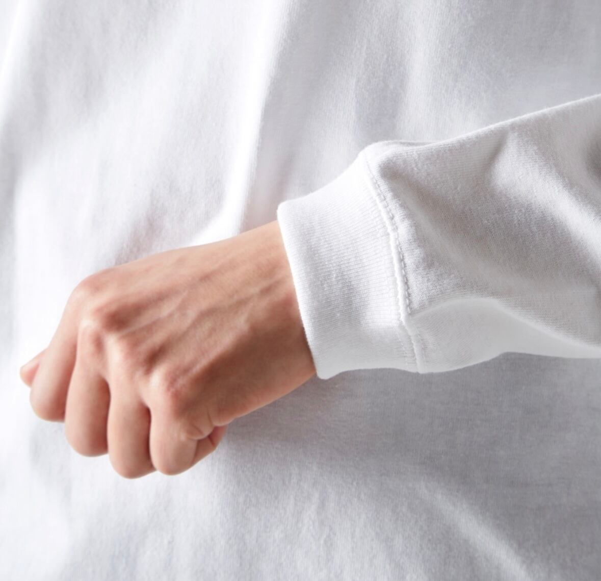 ・袖丈はゆったり長めで、薄手スウェット感覚のやわらかな着心地