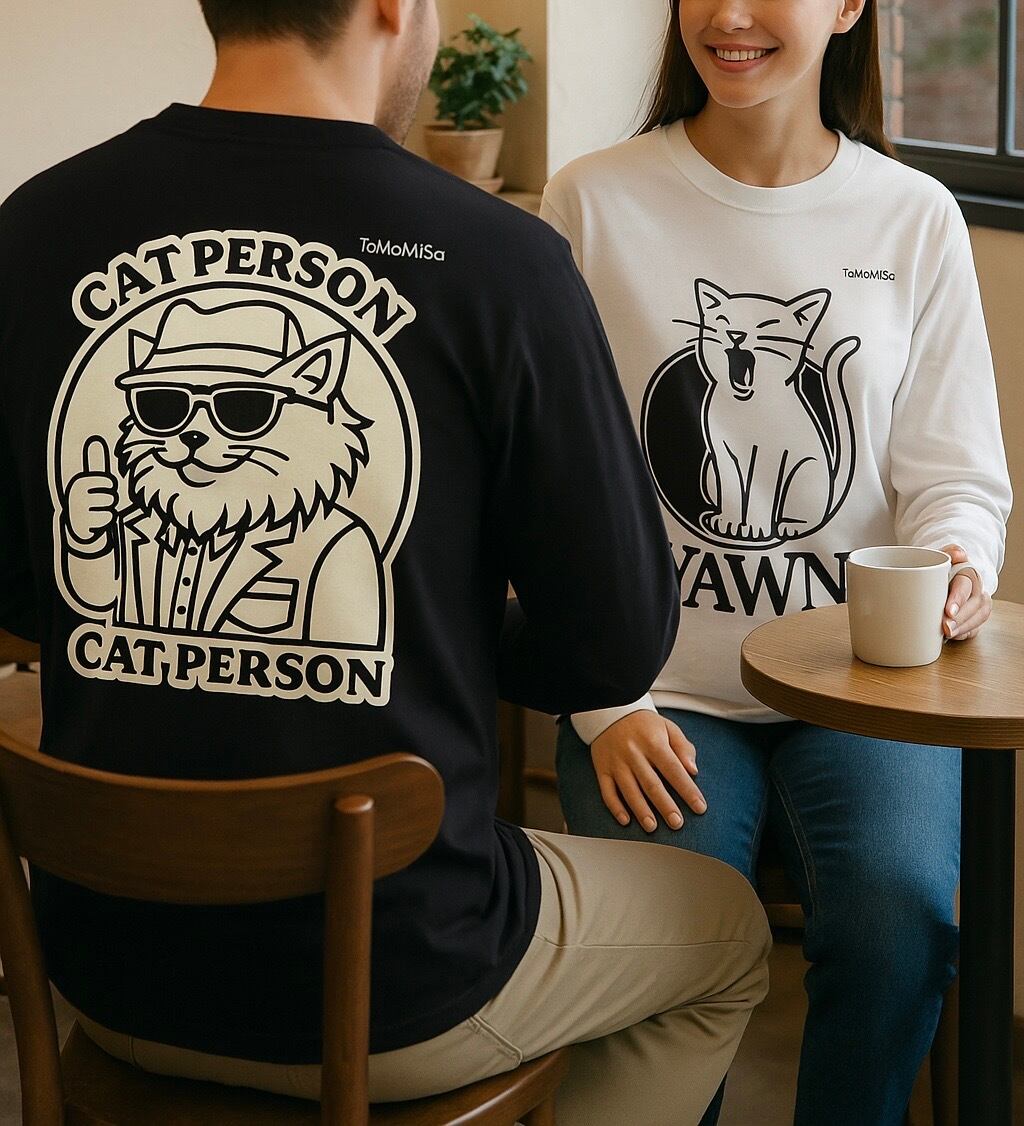 “猫派”であることを、クールにそして遊び心たっぷりに表現した一枚。